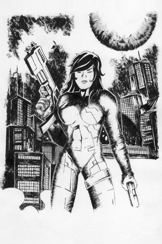 Illustration made with brush and chinese ink over paper.
