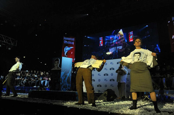 Campaña gráfica para evento de Juventud Sindical, incluyendo sistema de afiches, merchandising (remeras, pines, banderas, stickers), animaciones, diseño de escenografía y atril. Gestión de proyecto.