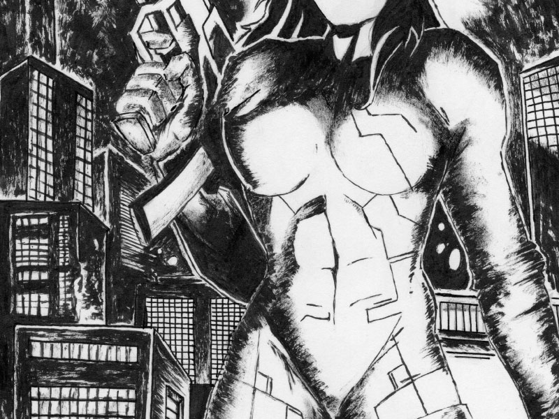 Illustration made with brush and chinese ink over paper.